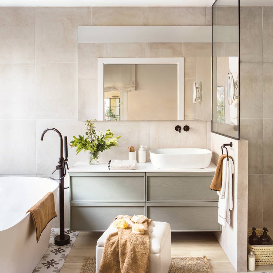 Para muebles de lavabo, considera pintura con chalk paint o adhesivos imitación madera que transforman completamente el aspecto. Nuevos tiradores, bisagras soft-close y organizadores internos completan la modernización. Inversión: 300-800€, resultado comparable a mobiliario nuevo de gama media-alta.